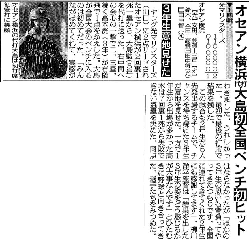 見事なホームランを放った2020年卒部生の大澤選手が日刊スポーツ優秀賞に